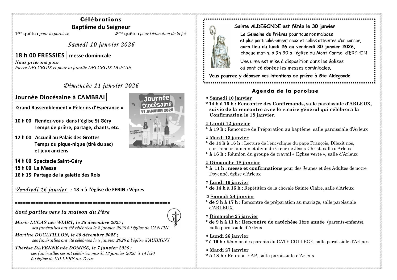 célébrations dans la paroisse - agenda - neuvaine à Ste Aldegonde