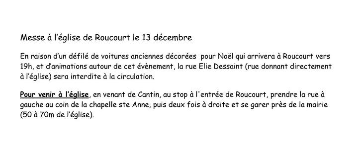 messe a l'eglise de ROUCOURT samedi 13 decembre Article publié par response.text()) .then(text => { html = text showLoading = false; })" class="flex justify-center animate-grow-on-hover--small">Beylemans Cécile • Publié le Samedi 13 décembre 2025 - 08h16 • 30 visites