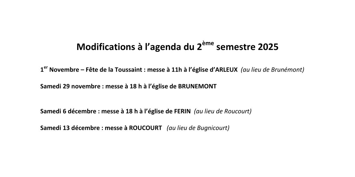 modifications a l'agenda 2eme semestre 2025 Article publié par response.text()) .then(text => { html = text showLoading = false; })" class="flex justify-center animate-grow-on-hover--small">Beylemans Cécile • Publié le Vendredi 03 octobre 2025 • 56 visites modifications a l'agenda 2eme semestre 2025 Télécharger 322.3 Ko Télécharger