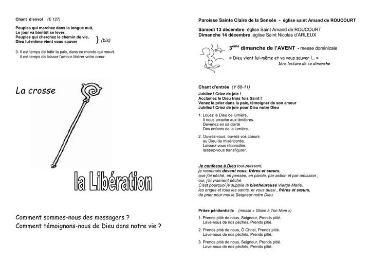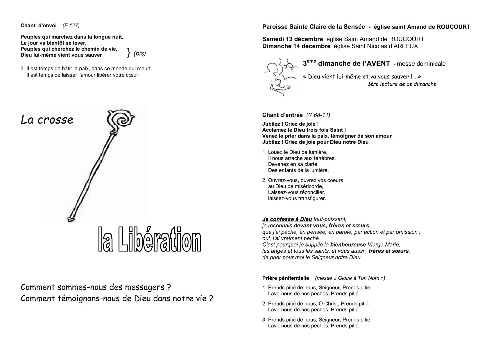samedi 13 décembre à 18 h à ROUCOURT et dimanche 14 à 11 h à ARLEUX