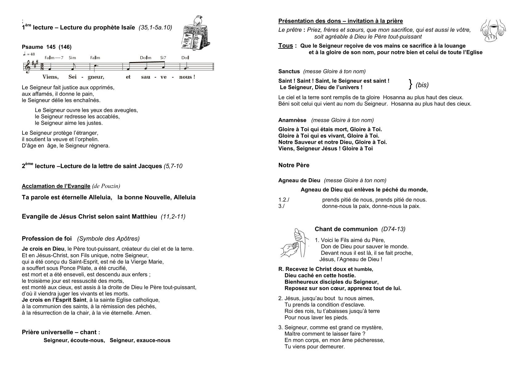 feuilles de chants 1-4 et 2-3