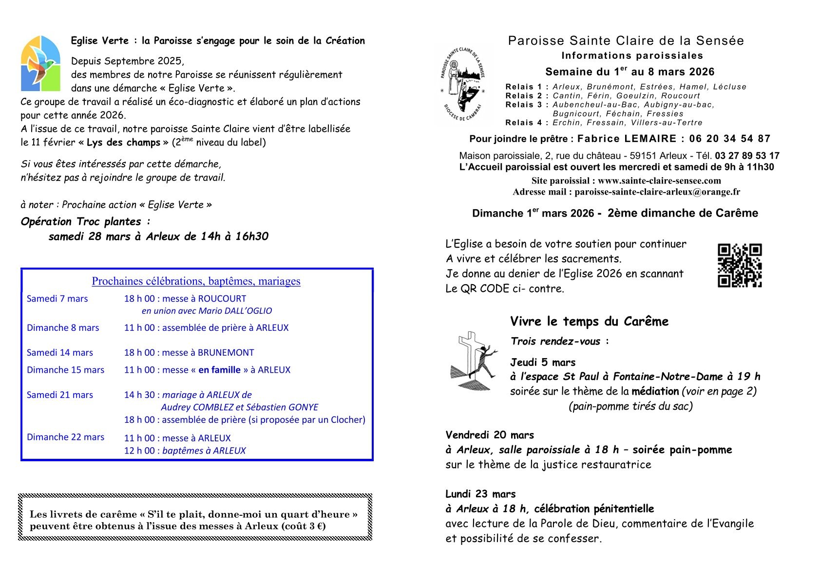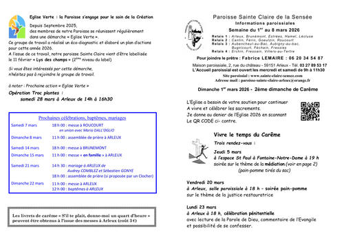 informations paroissiales - Église verte - calendrier des prochaines célébrations, des mariages et baptêmes