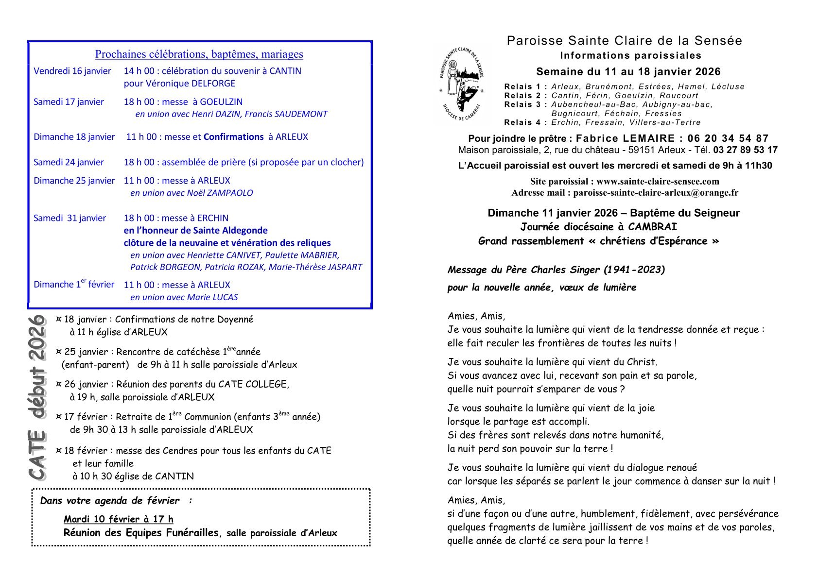 informations paroissiales - calendrier des prochaines célébrations - dates CATE