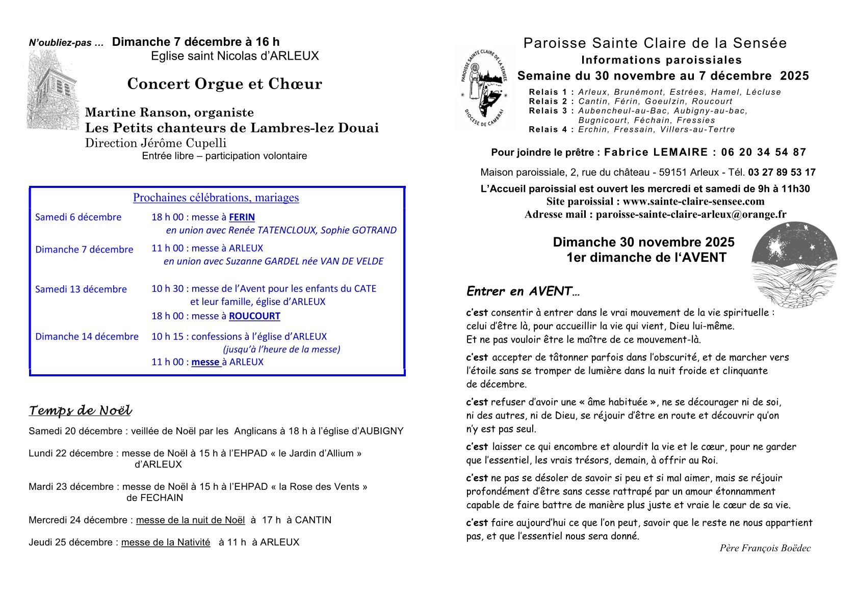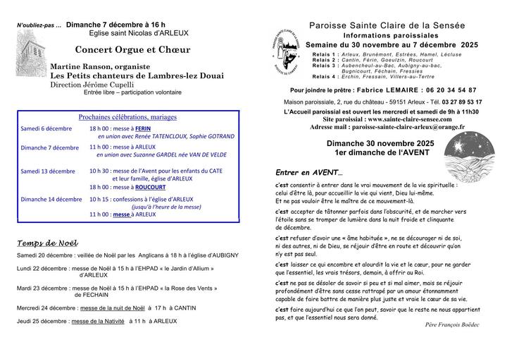 informations paroissiales - concert - prochaines célébrations