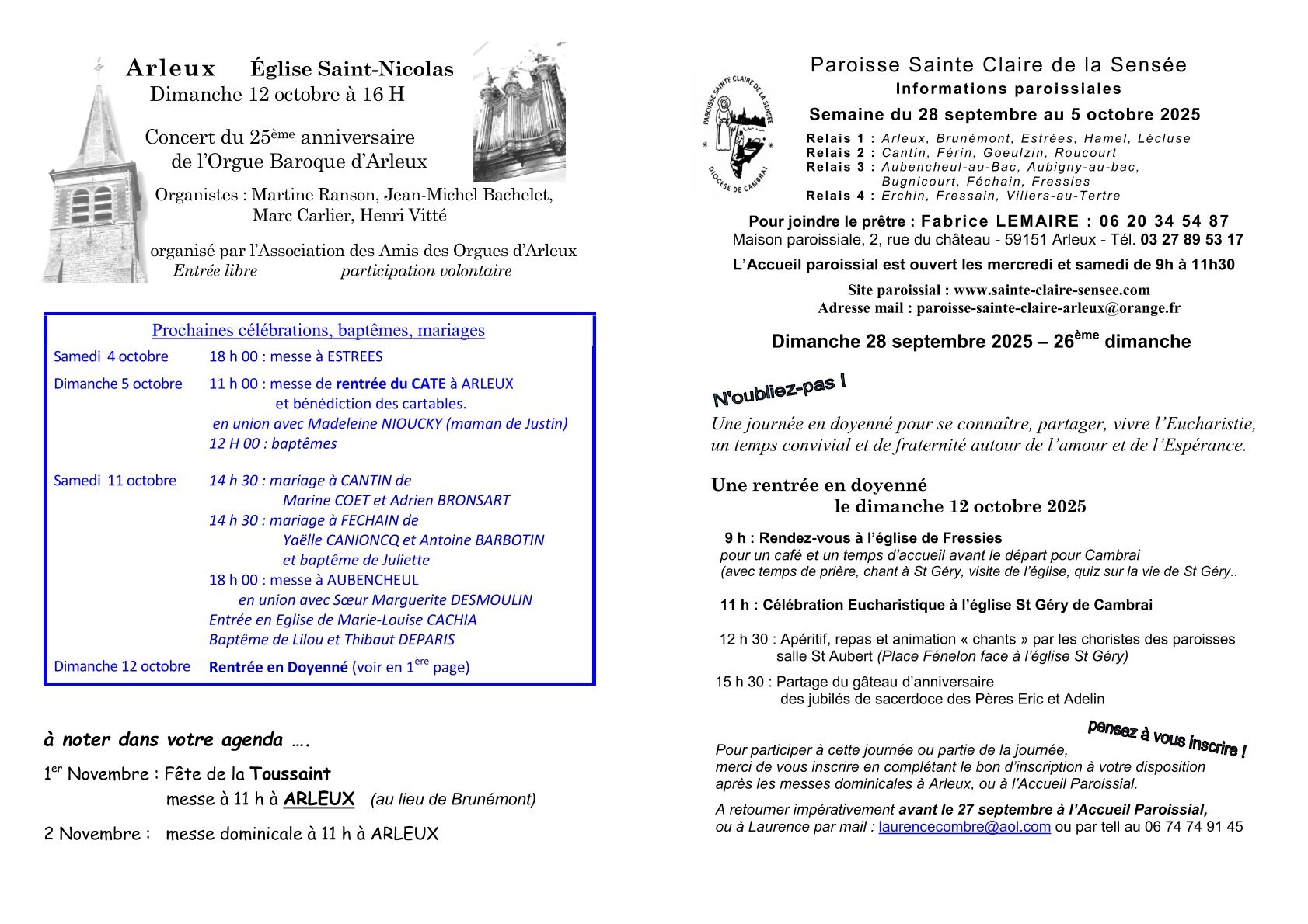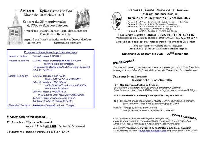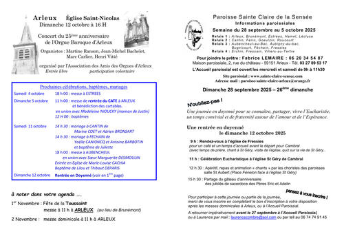 informations paroissiales - Journée de rentrée en Doyenné - concert